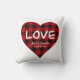 Love, red buffalo plaid pattern, valentine heart throw pillow