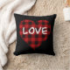Love, red buffalo plaid pattern, valentine heart throw pillow