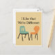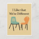 Two different styles of midcentury modern chairs graphic with "I Like that We're Different" for a fun and retro style relationship statement.