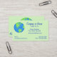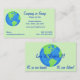 Promote Earth Day, respecting and loving the planet with this business card that gets to the message. This business card is great for an environmental business, group or for personal use to show your support with this eco friendly art design. Use to promote and spread the word to recycle and to keep the earth beautiful and free from pollution. This business card is easy to customize. On one side of the card, all the words "Love & Respect it" on top of the planet earth globe, and the words "it's in our hands" and "its our future" below the earth can be changed to your own words. On the other side, the earth globe is with all your contact information for your business. The green and blue earth globe is original art by Phyllis Dobbs and is on a lime green background. This business card is great to foster respect of the earth and keep it beautiful. This art is available on other items and with other color backgrounds in this store.