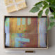 Love hippie boho brown green yellow pink craft decoupage tissue paper. Groovy bohemian vintage retro sixties gift wrapping. Rustic country colorful summer design. Decorative art. Image copyright Marg Seregelyi Photography.
