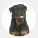 Aww...who can resist the cute face of a Rottweiler puppy dog? These cute canine stickers features an image of a brown and black Rottweiler dog highlighted against a creamy white background.