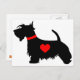 Lovely postcard with the silhouette of a scottie dog and a big red heart.