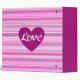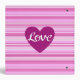Love Script & Heart on Stripes Pinks White Plum 3 Ring Binder