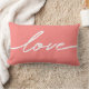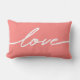 This coral lumbar pillow with "love" script typography in white is perfect for Valentine's Day.
