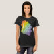 This T-Shirt features an inspirational quote in a handwritten script that says "Love sees no color" against a rainbow watercolor background.