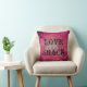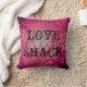 Decorative pink pillow with black design and print 'love shack'