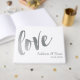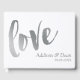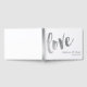 Beautiful wedding guest book in white with faux silver details. Love is written in the white wedding guestbook in a silver color. The font is a pretty brush script. Personalize with your names and wedding date in silver gray.
