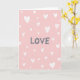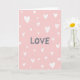 This design shows a soft blush pink background that feels gentle and romantic. In the center, the word “LOVE” appears in charcoal gray letters that look loosely hand-drawn, with slightly uneven lines. Around it, many small white hearts are scattered across the card, some filled in and some just outlines. The hearts vary in size and stroke, giving the layout a natural, easygoing look instead of a strict pattern. The simple colors and calm spacing help the message stand out without feeling crowded. It’s a sweet choice for someone you care about because it keeps the focus on love and closeness 🥰. The centered “LOVE” makes it clear what you want to say, even if you don’t have many words of your own ❤️. Hope it helps you share Valentine’s Day sentiments with someone special.