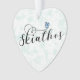 Greek flag in a heart, with Skiathios in scripted font, holiday ornament.