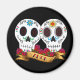 Happy and in love, these sugar skulls rest on a banner that says "Amor". They'll put a smaile on your face all year long, and the background color is customizable!