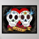 Two happy little sugar skulls, tattoo style bluebirds and roses, and a banner that reads "Amor". It doesn't get any more romantic than this! Customize this invitation for your Mexican Day of the Dead themed party or wedding.