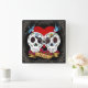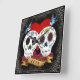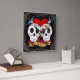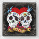 Two happy little sugar skulls, tattoo style bluebirds and roses, and a banner that reads "Amor". It doesn't get any more romantic than this! Great Day of the Dead themed gift for weddings and anniversaries!