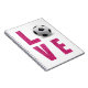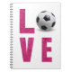 Love Soccer word design with hot pink faux sparkle letters and the "o" is replaced by a soccer ball.
