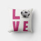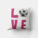 Love Soccer word design with hot pink faux sparkle letters and the "o" is replaced by a soccer ball.