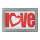 "love" sparkle white red heart text belt buckle