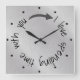 I love spending time with you quote clocks. Silver background, black circle handwriting typography, arrow accent. More at Quote Life Boutique.