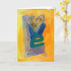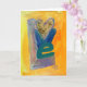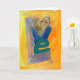 Letters of "Love" are stacked in a vertical tower. It is topped by a gold glitter pink heart "o". Background has golden orange color washes. Painting comes in a version without glitter. Personalize this love word art greeting card with your own text and images using the "Customize It" button.
