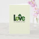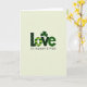 Designed with Irish charm front and center, this card features the large word “Love” in layered shades of green on a pale cream background, setting a cozy scene for St. Patrick’s Day. The “L” has a checkerboard of deep emerald and near-black green, like a patterned scarf two friends might share as they lean close. The “o” is filled with horizontal stripes in lighter and darker greens, giving it a lively rhythm that feels like laughter carried across rolling fields ☘️. The “v” rises into a three-leaf shamrock at the top, as if one person is offering a lucky sprig to someone special with a tender, knowing smile 💚. The “e” finishes the word in a solid forest green, adding a steady, grounded note to the design. Centered underneath, the phrase “ST. PADDY STYLE” appears in dark green, simple sans-serif letters, smaller than the headline and spaced neatly for balance. The overall layout stays uncluttered, with the big green “Love” dominating the upper area and the small line of text sitting just below it on the cream background for sharing St. Patrick's Day sentiments.