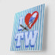 This design showcases crochet-style typography spelling a bold message of love for Taiwan, using soft yarn textures and a handmade aesthetic. Blue and white lettering references the iconic Taiwanese blue white slippers, while a vivid red heart highlights a Taiwan map detail. The contrast against a dark background enhances the tactile fiber art look, blending cultural symbolism with playful, textured typography for a visually warm and expressive composition.