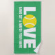 LOVE tennis ball beach towel with custom name. Personalized Birthday gift idea for him or her. Make your own fun towel for pool, beach or sports. Cute present for tennis player, coach, sports trainer, teacher, kids, retired person, friends, coworker, colleague, team, family, girl, boy, teenager etc. Customizable in different colors. Add your own name, funny quote or saying. Sporty stripes design.