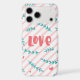 LOVE Text Pink Stripes Botanical Leaves iPhone Case