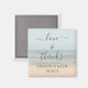 Give your guests a souvenir to your wedding and express your heart felt gratitude with this elegant magnet in beach front background and a calligraphy lettering saying "love & thanks!". Personalize the name and the wedding date.