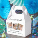 Add the finishing touch to your wedding with these fun custom photo wedding favor boxes. Perfect as wedding favors to all your guests . Customize these wedding favor boxes with your favorite wedding photo, newlywed photo, and personalize with name and date. See our wedding collection for matching wedding favors, newlywed gifts, and just married keepsakes. COPYRIGHT © 2020 Judy Burrows, Black Dog Art - All Rights Reserved. Love & Thanks Elegant 3 Photo Bride Groom Wedding Favor Box