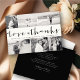 This modern and classy black and white multi 5 photo wedding thank you card template features stylish white calligraphy font script in classic typography design on a simple band.