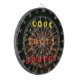 The artwork features a centered and balanced layout that draws the viewer's eye to the central motif, combining text and imagery for a striking effect. The dark background enhances the vibrancy of the colors, making the design pop.