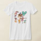 T-shirt with circus theme including dancers, trapeze artists, a mouse with hula hoop, cat, and a heart with text that reads Circus!