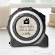 A romantic tape measure featuring a house graphic with heart accent and the quote "I Love the Life That We've Built Together" with a custom name and "XO" on a light gray wood grain background. A sweet, punny gift for a handy husband, partner, or significant other. Perfect for anniversaries, Valentine's Day, or Father's Day. The name is fully customizable.