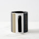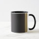 Stripes in greys and gold, a designer mug, personlaie the text love this stuff to a name or message. text is also removable.