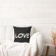 Dark pillow with LOVE in white. Grade A cotton, 16x16 throw.
