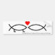 A Darwin fish, a Christian fish, and a positive human emotion.