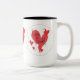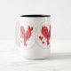 A fun mug with a handlettered message "Love to Cook!" that has hearts galore on it and and also has matching apron and kitchen towel available for a complete kitchen look.