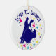 Lightweight, smooth, pure white ornament with nice sheen. Perfect size to be seen from across the room ... and to attract closer inspection! Price was great for ordering enough for the whole family! Clear, bold black design just as requested. Matches the order exactly. Just so nice!