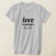 My overall review is that the T-shirt is nice, it fits true to size however the font is significantly smaller than advertised and you can't read it. The printing is unreadable and there is a strain to read it. It does not look like the advertised product. Maybe the shirt color is darker or a larger more visible font should have been used. Photos with and without flash and font is barely legible.