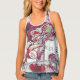 Women's All-Over Print Racerback Tank Top, White Piping, S