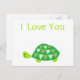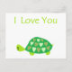 Love Turtle postcard. Customizable postcard has a cute green love turtle with the words I Love You.