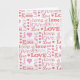 Share the love with this playful Valentine’s Day typography greeting card featuring a repeating pattern of the word “Love” in a variety of charming fonts. The soft pink and red color palette with scattered hearts creates a romantic and cheerful design perfect for celebrating Valentine’s Day.