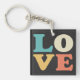 Love Typography Retro Color Square Keychain