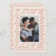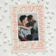 This trendy Valentine's Day card features a bold, minimalist typographic design using the word "Love". A photo frame with a white border is placed over the lettering, allowing just enough the word to be visible and legible. There is space for a custom holiday greeting beneath the typographic design. The back side of the card features a coordinating heart pattern.