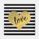Customized Magnet: Chic Gold Tones Metallic Heart Design/Whimsical "Love" Typography/Chic Black And White Stripes Background