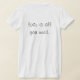 My overall review is that the T-shirt is nice, it fits true to size however the font is significantly smaller than advertised and you can't read it. The printing is unreadable and there is a strain to read it. It does not look like the advertised product. Maybe the shirt color is darker or a larger more visible font should have been used. Photos with and without flash and font is barely legible.