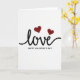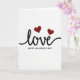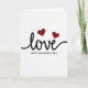 This greeting card shows the word “love” centered on a bright white background, written in flowing black lettering with tiny gold flecks that catch the light. Two red glitter hearts sit above the word, with the larger heart above the “o” and a smaller one above the “v.” The hearts look like they’re gently floating, with soft shadows underneath that add a little depth. Below the main word, the text “HAPPY VALENTINE’S DAY!” appears in a simple, all-caps style in black near the bottom. The mix of black, gold, and red feels classic and sweet, without needing a lot of extra detail ❤️. It’s a meaningful card to give because it says exactly what you feel, and the glitter touches make it feel a bit more special 🥰. Hope it helps you share Valentine’s Day feelings with someone you care about.