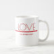 Mug with a red and white with a minimal design for Valentine's Day. All of the text can be customized.