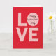 This Valentine's Day card features the word “LOVE” stacked vertically on a deep red background. The letters “L,” “V,” and “E” are a soft pink and look slightly raised, giving them a gentle 3D feel. Instead of a usual “O,” there’s a pink oval shape in the middle that draws your eye. Inside that oval, the card says “Happy Valentine’s Day” in thin, cursive-style writing. The background red has a faint grainy texture, like printed paper, which adds a cozy touch. The simple red-and-pink color pairing feels romantic and direct, with no extra clutter. It’s a sweet way to say what you feel with ❤️💘. Hope it helps you share a little love on Valentine’s Day.