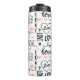 Pink and Black Thermal Tumbler with Hearts and Love all over.