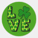 LOVE with Green Shamrocks and Yellow Classic Round Sticker